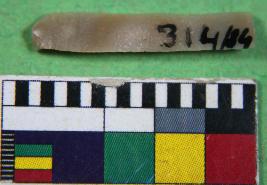 | Description / विवरण | Fragment of micro chert blade showing thin broad parallel sided, one end truncated and tringular in section. Its surface is smooth. |