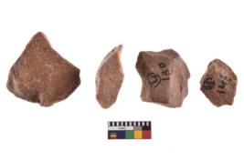 | Description / विवरण | A specimen of flake tool with prominent flaking marks. It made up of a short flakes with sides trimmed. It is rectangular in shaped. |