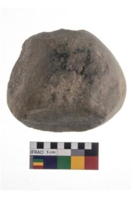 | Description / विवरण | A partially broken specimen of a hammer stone, with smooth surface It is made of basalt it is roughly oblong in shape, it is with battering marks. |