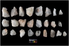 | Description / विवरण | There are n- 23 object . Some of the flakes shows crescent shape. Some of them represent Levallois type of flakes. While some of them have tanged point. |
