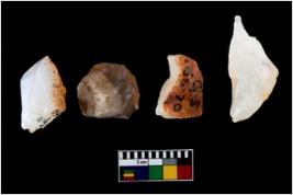 | Description / विवरण | Four utilised worked cores with sharp edges. Some of them are tapering at one end. |