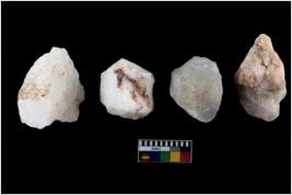 | Description / विवरण | Specimen of fluted cores having several broad fluted marks indicating the detached blades from it. |