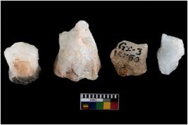 | Description / विवरण | Specimen of fluted cores having several broad fluted marks indicating the detached blades from it. |