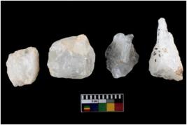 | Description / विवरण | Specimen of fluted cores having several broad fluted marks indicating the detached blades from it. |