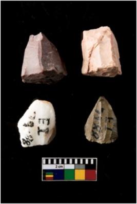 | Description / विवरण | There are n-4 of cores. All are made up of Chert. All of them are intact fully fluted cores without any trace of crested ridge flakes. |