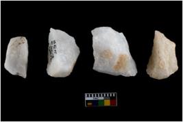 | Description / विवरण | Specimen of fluted cores having several broad fluted marks indicating the detached blades from it. |