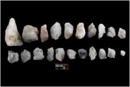 | Description / विवरण | There are two chalcedony and eighteen quartz, some are sharp and some are debitage. The chalcedony flake is quite sharp on its edges and is in the shape of an arc. The others are trapezium, lunates. |