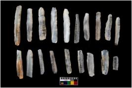 | Description / विवरण | There are 20 chalcedony blades which has parallel sided flakes along with retouching on both side and some are primary flakes,pen knives . |