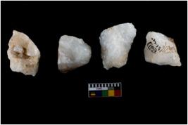 | Description / विवरण | Specimen of fluted cores having several broad fluted marks indicating the detached blades from it. |
