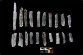 | Description / विवरण | There are 20 chalcedony blades which has parallel sided flakes along with retouching on both side and some are primary flakes, pen knives . |