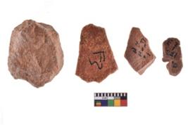 | Description / विवरण | A specimen of flake tool with prominent flaking marks. It made up of a short flakes with sides trimmed. It is rectangular in shaped. |