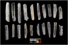 | Description / विवरण | There are 20 chalcedony blades which has parallel sided flakes along with retouching on both side and some are primary flakes, pen knives . |