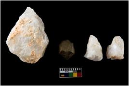 | Description / विवरण | There are three quartz and one chert core.The chert core has a pointed tip and is in a very good shape along with one quartz core. The chert core has a flat base. |
