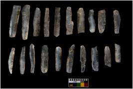 | Description / विवरण | There are 20 chalcedony blades which has parallel sided flakes along with retouching on both side and some are primary flakes, pen knives . |