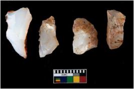 | Description / विवरण | Four utilised worked cores with sharp edges. Some of them are tapering at one end. |