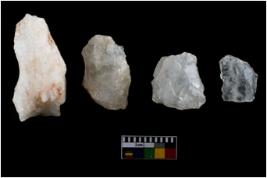 | Description / विवरण | Specimen of fluted cores having several broad fluted marks indicating the detached blades from it. |