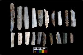 | Description / विवरण | There are 20 chalcedony blades 5 core blade and 1 jaspar some are parallel sided flakes along with retouching on both side,few pen knives some are full size blades. |