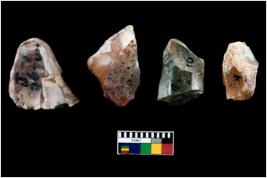 | Description / विवरण | A specimen of fluted core having several broad fluted marks indicating the detached blades from it |