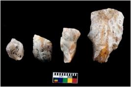 | Description / विवरण | A specimen of fluted core having several broad fluted marks indicating the detached blades from it |