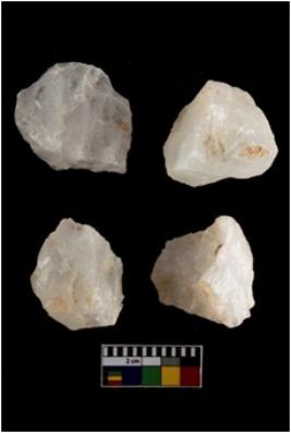 | Description / विवरण | There are n-4 of cores. All are made up of Quartz. All of them are intact fully fluted cores without any trace of crested ridge flakes. |