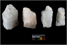 | Description / विवरण | Specimen of fluted cores having several broad fluted marks indicating the detached blades from it. |