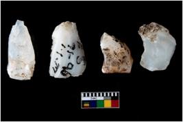 | Description / विवरण | Four utilised worked cores with sharp edges. Some of them are tapering at one end. |