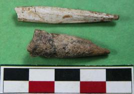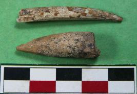 | Description / विवरण | Fragments of two bone points having conical shape .Slightly chipped-off from the surface. Their colour is off-white and surface is smooth. |