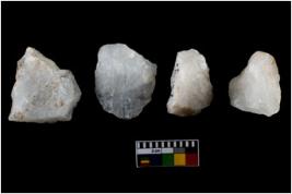 | Description / विवरण | Specimen of fluted cores having several broad fluted marks indicating the detached blades from it. |
