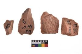 | Description / विवरण | A specimen of flake tool with prominent flaking marks. It made up of a short flakes with sides trimmed. It is rectangular in shaped. |