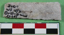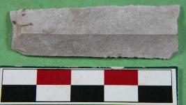 | Description / विवरण | Standard size chert blade showing thick broad parallel sided, one end truncated, tringular in section and sharp cutting edges. Its surface is smooth. |