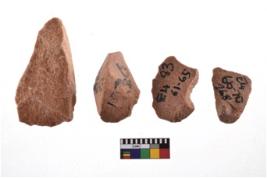 | Description / विवरण | A specimen of flake tool with prominent flaking marks. It made up of a short flakes with sides trimmed. It is rectangular in shaped. |