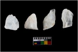 | Description / विवरण | Specimen of fluted cores having several broad fluted marks indicating the detached blades from it. |