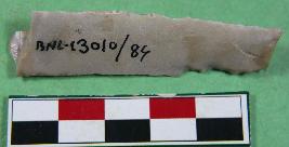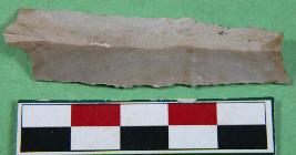 | Description / विवरण | Standard size chert blade showing thick broad parallel sided, tringular in section and sharp cutting edges. Its surface is smooth. |
