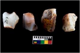 | Description / विवरण | A specimen of fluted core having several broad fluted marks indicating the detached blades from it |