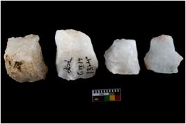 | Description / विवरण | Specimen of fluted cores having several broad fluted marks indicating the detached blades from it. |