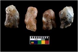 | Description / विवरण | A specimen of fluted core having several broad fluted marks indicating the detached blades from it |