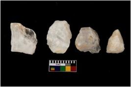 | Description / विवरण | There are n-4 of cores. All are made up of Quartz. All of them are intact fully fluted cores without any trace of crested ridge flakes. |
