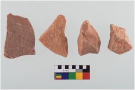 | Description / विवरण | Specimen of flake tools with prominent flaking marks. Made up of a short flakes with sides trimmed. |