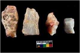| Description / विवरण | A specimen of fluted core having several broad fluted marks indicating the detached blades from it |