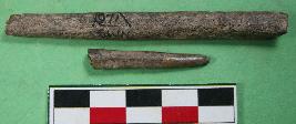 | Description / विवरण | Bone point conical in shape and broken into two pieces. Its colour is off white and rough surface. |