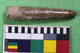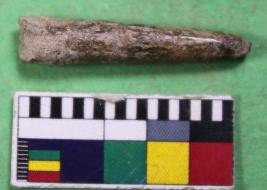 | Description / विवरण | Fragment of bone point conical in shape. Its colour is off white and rough surface. |