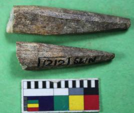 | Description / विवरण | Bone point conical in shape. Its colour is brown and rough surface. |