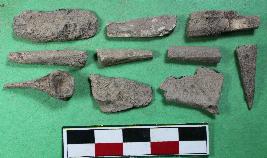 | Description / विवरण | Different size fragments of bone point conical in shape. Its colour is off white and rough surface. |
