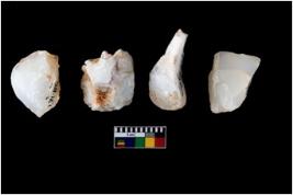 | Description / विवरण | Four utilised worked cores with sharp edges. Flakes have been removed from few sides. |