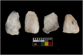 | Description / विवरण | There are n-4 of cores. All are made up of Quartz. All of them are intact fully fluted cores without any trace of crested ridge flakes. |