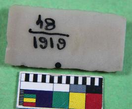 | Description / विवरण | Standard size chert blade showing thick broad parallel sided, trapezi in section and sharp cutting edges. Its surface is smooth. |