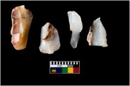 | Description / विवरण | Four utilised worked cores with sharp edges. Flakes have been removed from few sides. |
