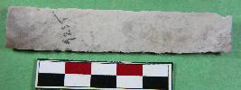 | Description / विवरण | Standard size chert blade showing thick broad parallel sided, trapezi in section and sharp cutting edges. Its surface is smooth. |