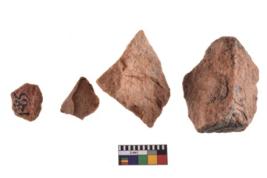 | Description / विवरण | A specimen of flake tool with prominent flaking marks. It made up of a short flakes with sides trimmed. It is rectangular in shaped. |