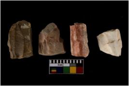 | Description / विवरण | There are n-4 of cores. All are made up of Quartz. All of them are intact fully fluted cores without any trace of crested ridge flakes. |